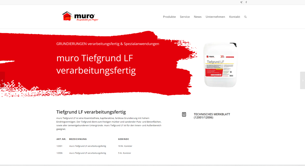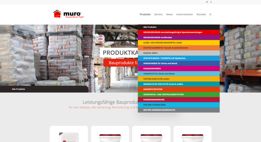 Ich entwickelte den neuen Webauftritt der muro Bauprodukte GmbH, einem etablierten deutschen Mittelständler mit über 30 Jahren Erfahrung in der Produktion hochwertiger Bauprodukte in Bayern. Im Jahr 2017 habe ich die Neugestaltung ihrer Online-Präsenz vorgenommen, wobei das Hauptaugenmerk auf klarer Strukturierung und responsive Design lag. Die ansprechende Darstellung und Übersichtlichkeit der Produktpalette der muro Bauprodukte GmbH war mit über 100 verschiedenen Bauprodukten die größte Herausforderung.