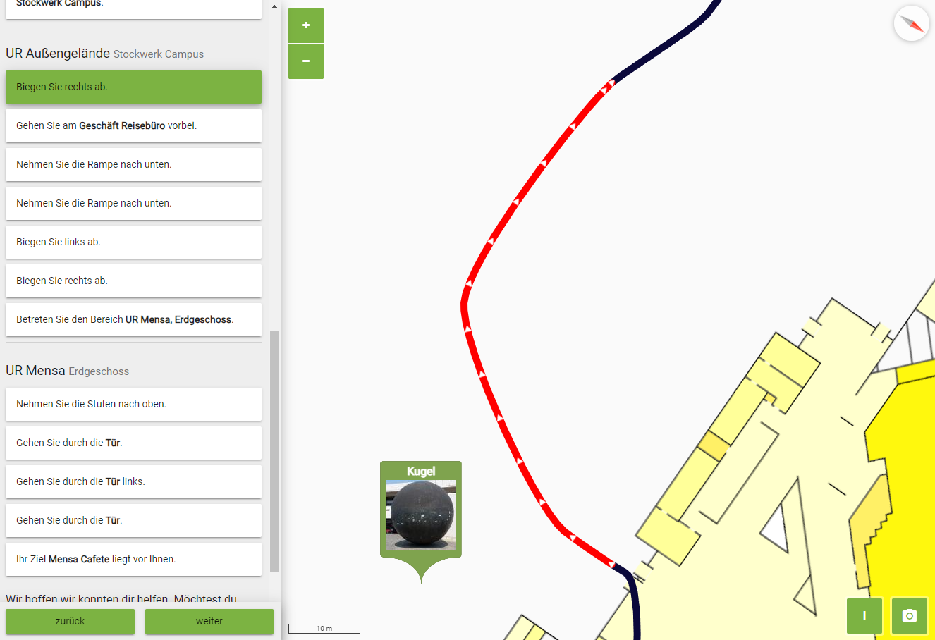 URwalking befindet sich in ständiger Weiterentwicklung und dient als Grundlage für innovative Ansätze und Studien im Bereich der Fußgängernavigation. Unsere Arbeit trägt dazu bei, Besuchern und Studierenden der Universität Regensburg eine effiziente und benutzerfreundliche Navigation zu bieten.