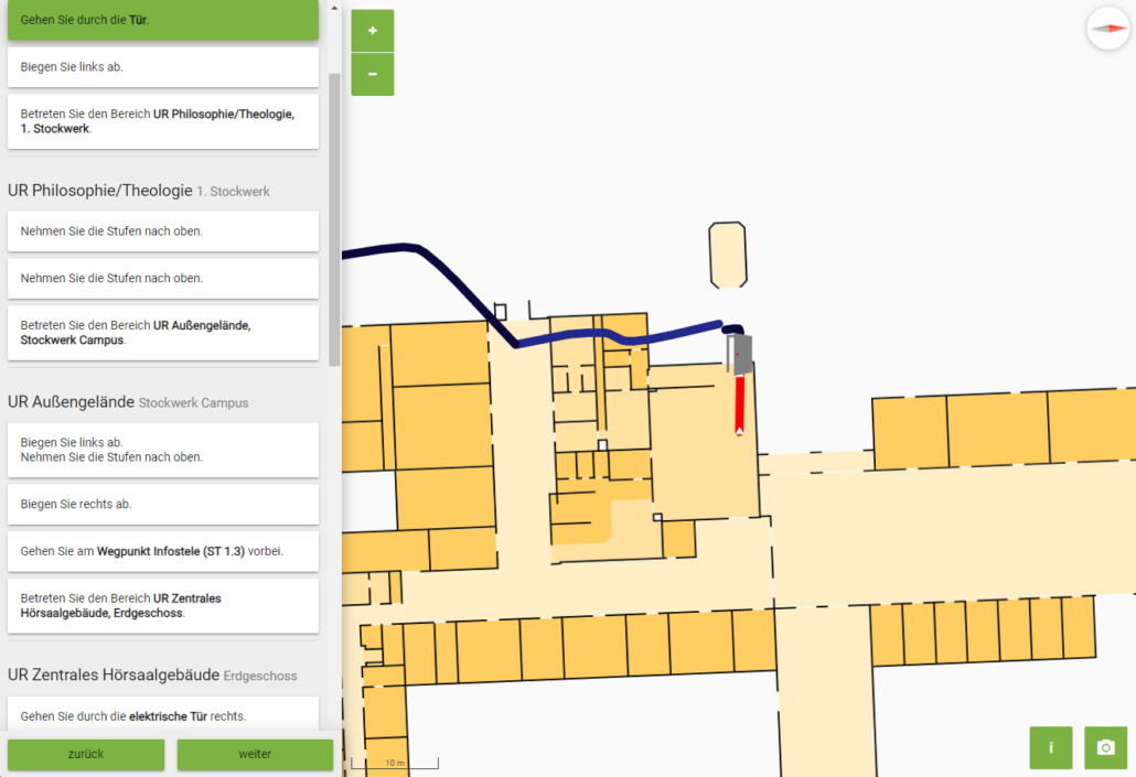 Die URwalking-Navigation wird noch heute aktiv auf dem Campus der Universität Regensburg eingesetzt und hat sich als das bevorzugte Tool für Raumsuche und Navigation unter Studierenden etabliert. Wir sind stolz darauf, dass unsere Arbeit einen bleibenden und wertvollen Beitrag zum Campusleben leistet und weiterhin in der Praxis genutzt wird.